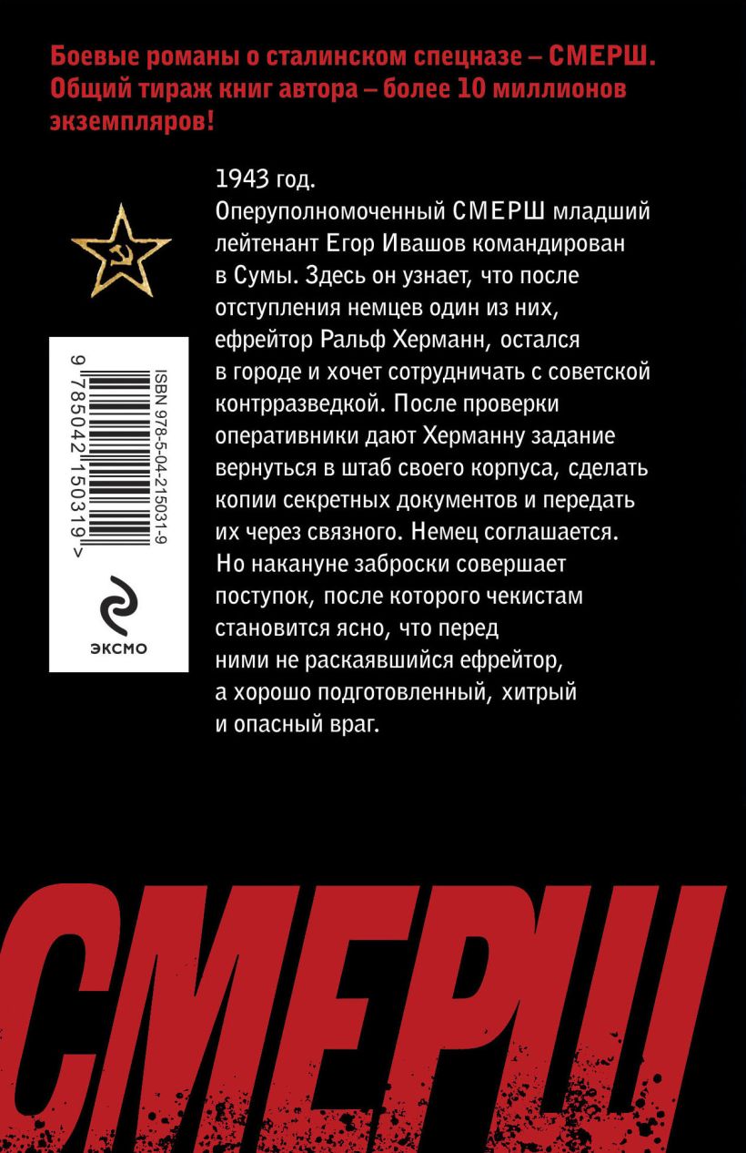 Романы серии «СМЕРШ — спецназ Сталина» — это каждый раз увлекательный динамичный сюжет и новые исторические знания, это экшен, написанный простым и понятным языком.