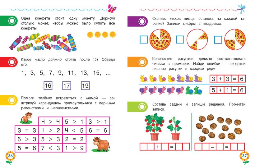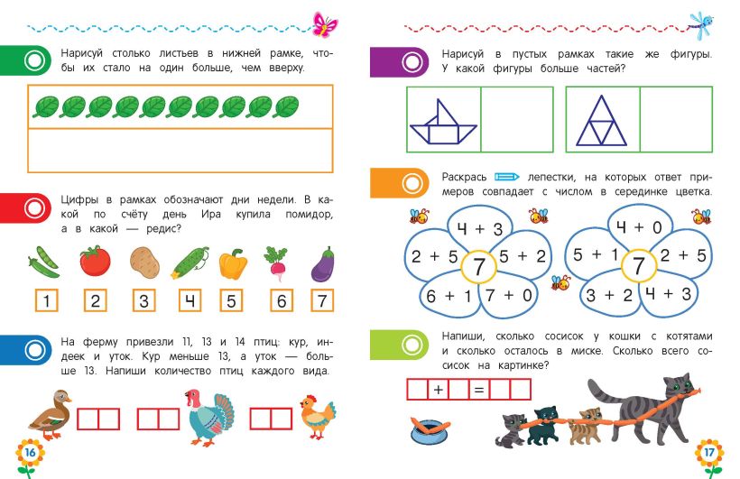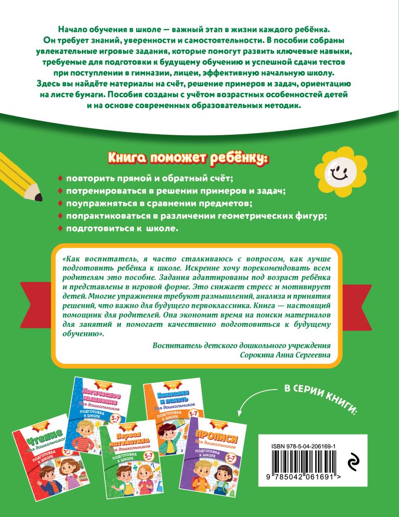 Поступление в 1-й класс — важнейший этап в жизни ребёнка, и к нему нужно хорошо подготовиться. Тренажёр включает в себя задания разного типа на проверку степени усвоения базовых математических понятий и умений, необходимых для дальнейшего изучения математики. С помощью пособия вы сможете проверить уровень сформированности первоначальных математических знаний будущего первоклассника: умеет ли он соотносить количество предметов с числом, считать в прямом и обратном порядке, сравнивать, вычитать и складывать числа, решать задачи, различать геометрические фигуры, ориентироваться на листе бумаги. Задания, представленные в тренажёре, помогут оценить способности ребёнка, определить, с чем он справляется успешно, и выделить те области, которые вызывают у него затруднения. Книга-развивашка от издательства «Эксмо» будет полезна девочкам и мальчикам 5, 6, 7 лет для подготовки к школе по математике. Рекомендуем также приобрести пособия: «Чтение», «Графические навыки», «Логическое мышление», «Внимание и память».
