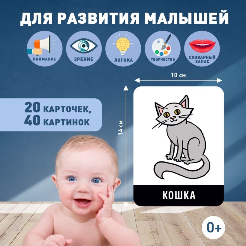 Не знаете, как сделать обучение малыша более увлекательным? Беспокоитесь, что делаете недостаточно для его успешного развития? С нашим набором развивающих карточек для новорожденных вы сможете забыть о волнениях по этому поводу. 20 изображений на плотном картоне со скругленными краями зацепят внимание самых маленьких и сделают обучение не только познавательным, но и увлекательным. Большой формат (10 см в ширину и 14 см в длину) позволит глазкам ребенка не перенапрягаться и сосредоточиться на восприятии нарисованных предметов.