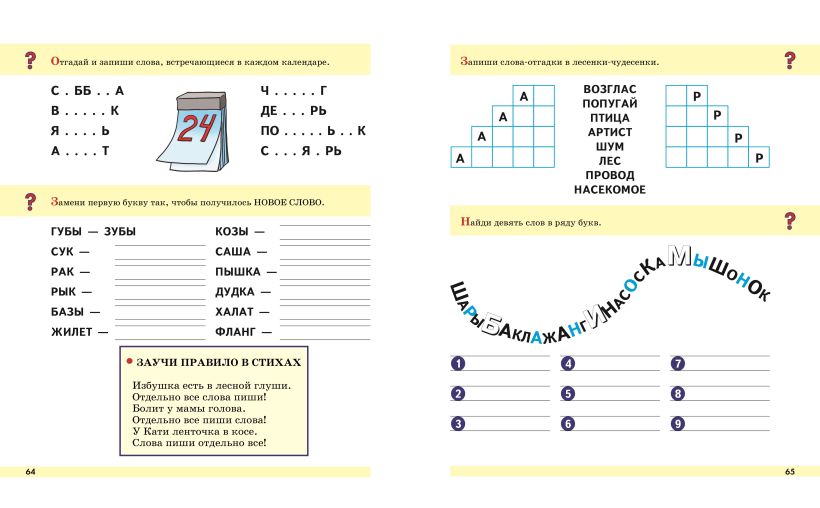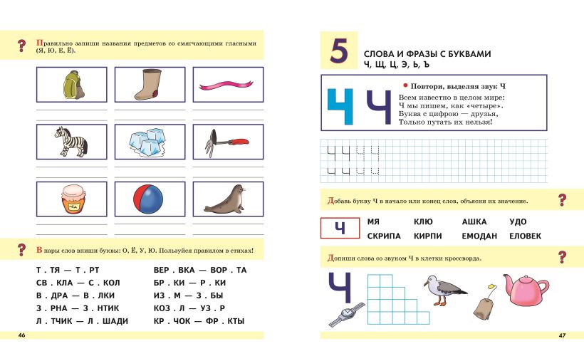 Пособие, соответствующее ФГОС, — отличный помощник первоклассника по формированию аккуратного почерка, усвоению приёмов правильного письма, развитию мелкой моторики, внимания, глазомера. Работая в книге, учащиеся будут выполнять задания на отработку навыков написания букв и их элементов, слогов, слов и простых предложений, повторят алфавит, правописание безударной гласной в корне, глухих и звонких согласных, заглавной буквы, словарных слов, сочетаний ЖИ-ШИ, ЧА-ЩА, ЧУ-ЩУ, ЧК, ЧН, ЧТ. Пособие поможет ученикам дополнительно позаниматься и закрепить полученные в школе умения. Первокласснику тяжело долго заниматься непрерывным письмом. Переключить внимание ребёнка помогут игровые задания — упражнения на обводку предметов по пунктиру, штриховку в разных направлениях, копирование и дорисовывание узоров. Занимаясь по пособию, учащиеся смогут: • Отработать написание букв, слогов, слов и предложений. • Развить орфографическую зоркость. • Выработать уверенный, разборчивый красивый почерк.