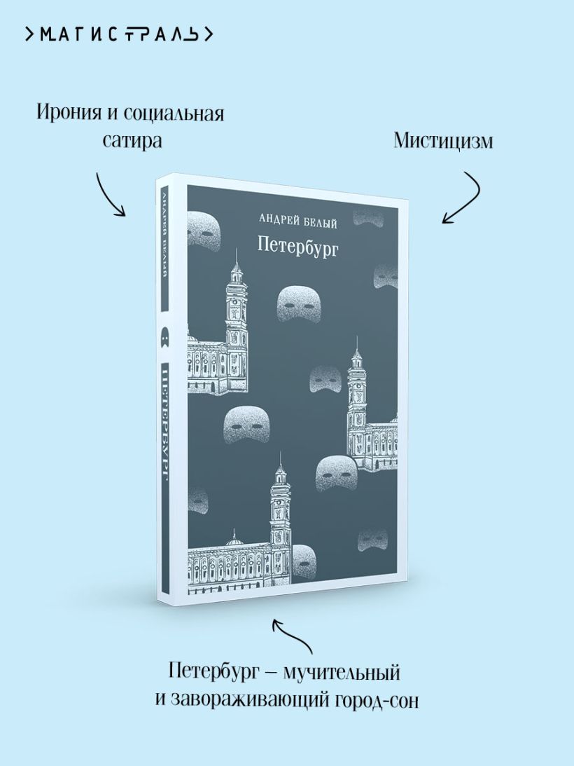 Петербург в одноименном романе — мучительный и завораживающий, город-сон, город-галлюцинация, он же является и главным героем произведения. На фоне величественной архитектуры сталкиваются людские судьбы. Революционеру Николаю Аполлоновичу Аблеухову поручено страшное дело — убить своего отца-сенатора.