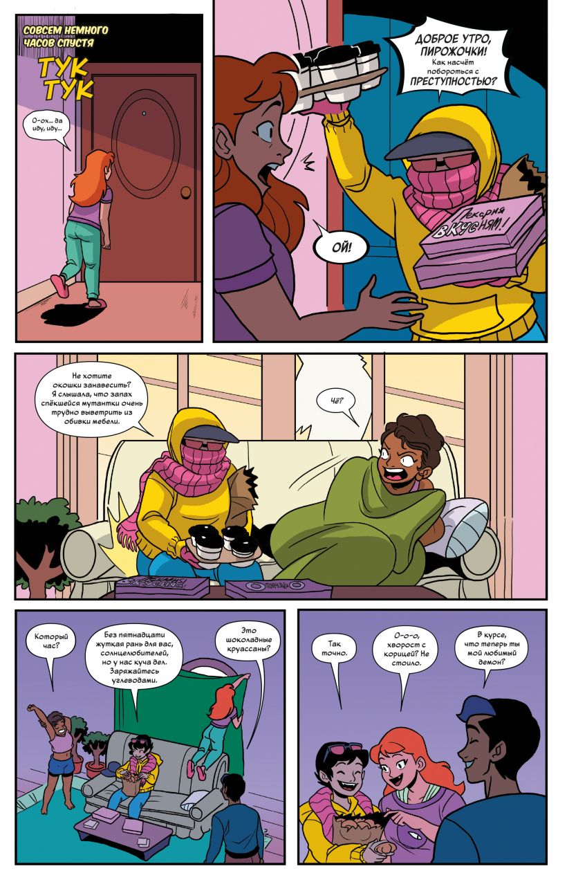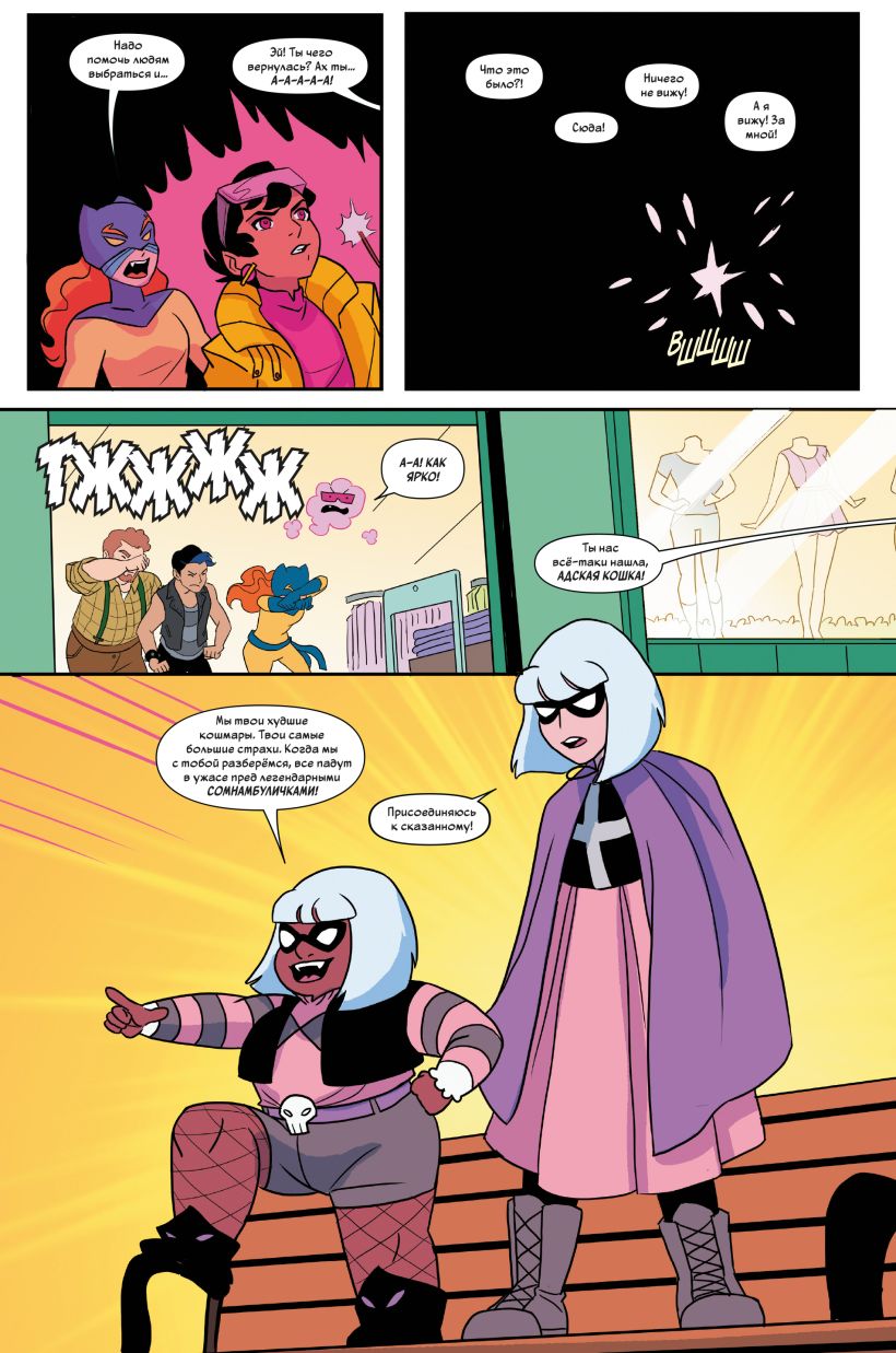 Как же Пэтси победить в кошачьей сваре, если Фелиция держит в лапах целую девчачью банду? Узнаете в финальной битве gato a gato! Затем Пэтси свалит болезнь — но не обычная простуда! Поди разбери, это бредовые сны или ожившие кошмары? Когда Бруклин захлестнёт волна хаоса, Адская Кошка сможет положиться только на самых верных друзей... и супчик! Ведь ей хочется лишь выздороветь и тусить в торговом центре с Джубили: перекусить на фудкорте, глянуть киношку и приодеться. Само собой, не стоит опасаться никаких злодеев, чего бы им там делать? То-то же!