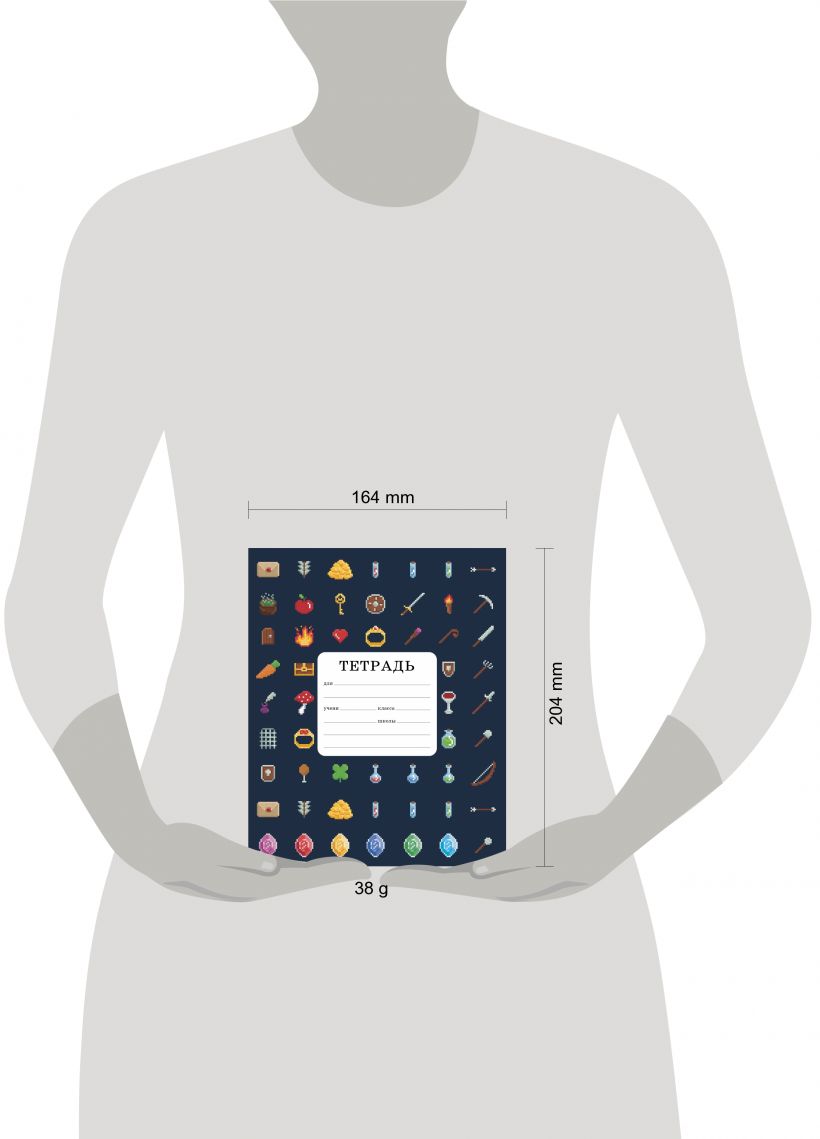 Тетрадь школьная «Пиксельные предметы» формата А5, подойдет школьнику младших классов.