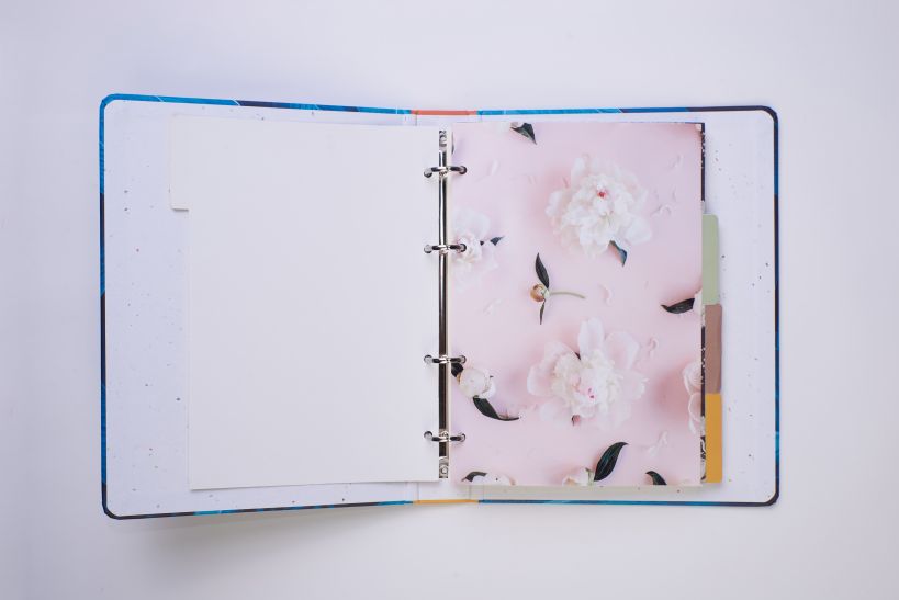 Пионы. Тетрадь на кольцах, А5, 100 л., с цветными разделителями, зол. фольга