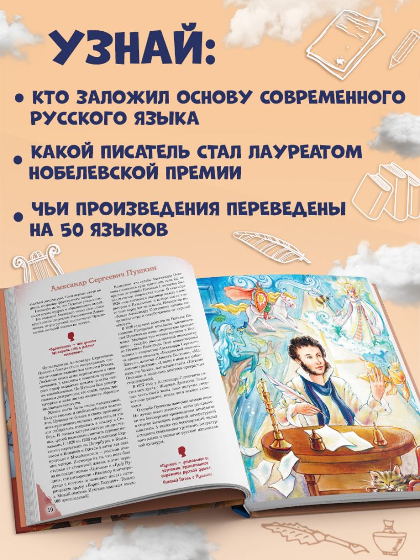 Эта книга патриотической серии «Великие люди великой страны» рассказывает о двадцати наших знаменитых соотечественниках — поэтах, прозаиках, баснописцах, публицистах, издателях и драматургах, чьи имена навсегда останутся в истории России. Кто заложил основы современного русского языка? Какой писатель стал лауреатом Нобелевской премии по литературе? Чьи произведения были переведены на 50 языков мира?