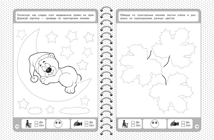 Книга от издательства «Эксмо» — это настоящая находка для родителей, чьи дети скоро пойдут в 1 класс. Пособие, соответствующее ФГОС, четко структурировано и поможет быстро и качественно подготовить руку ребенка к письму. Крупные занимательные картинки будут мотивировать ребенка, и он получить огромное удовольствие от своей деятельности. Занимаясь, дошкольник будет аккуратно обводить по пунктиру и проводить разные типы линий, проходить веселые лабиринты, рисовать узоры. Внизу каждой страницы имеются значки для оценки выполненных заданий. Поставив галочку в клетках «да» или «нет», ребенок сможет проконтролировать себя, а нарисовав ротик у смайлика вверх или вниз — оценить результат (хорошо / не очень хорошо). Постоянная работа с пособием поможет дошкольнику развить мелкую моторику, графические навыки, внимание, творческие способности, стать более усидчивым и аккуратным.