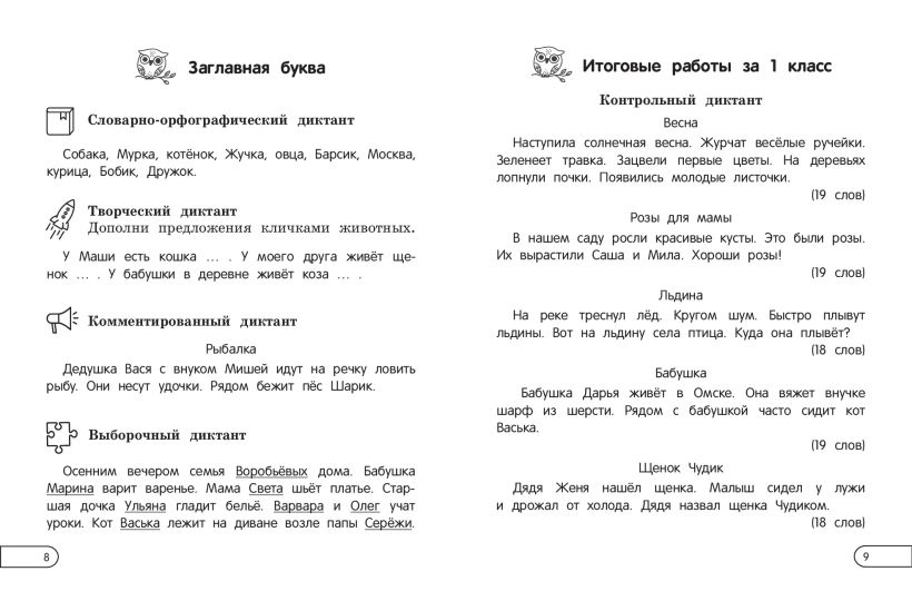 Пособие по русскому языку от издательства «Эксмо» подготовлено в соответствии с требованиями ФГОС для начальной школы и может быть использовано с любым из действующих учебников для 1 класса. Удобный тренажер с интересным современным макетом поможет ребёнку улучшить грамотность, восполнить пробелы, углубить и систематизировать знания. Занимаясь, школьник не только отработает основные темы школьной программы: правописание ЖИ-ШИ, ЧА-ЩА, ЧУ-ЩУ, ЧК, ЧН, НЧ, НЩ, парных согласных в конце слова, имен собственных, предлогов и др., но и научится работать по плану, то есть выполнять определенный алгоритм действий, который поможет ему осознанно применять правила. Когда навык грамотного письма будет доведен до автоматизма, результат в виде твердых знаний и отличных оценок не заставит себя ждать.