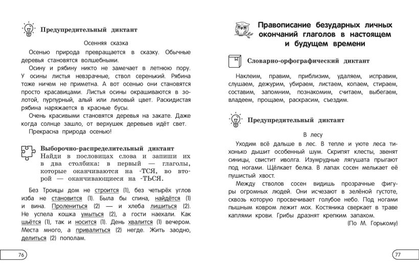 Тренажёр по русскому языку, соответствующий ФГОС для начальной школы, поможет развить у школьников навыки грамотного письма. Занимаясь, ребёнок потренируется определять время и вид глаголов, правильно писать безударные окончания глаголов, сочетания "тся" и "ться", частицу "не" с глаголами, буквы "о", "е" после шипящих и "ц", находить однородные члены, различать простые и сложные предложения. Книга адресована педагогам и родителям, которые хотят помочь своему ребёнку глубже изучить учебный материал, закрепить полученные навыки или восполнить определённые пробелы в знаниях. Тренажёр по русскому языку можно использовать как для домашних занятий, так и для коллективной и индивидуальной работы в классе.