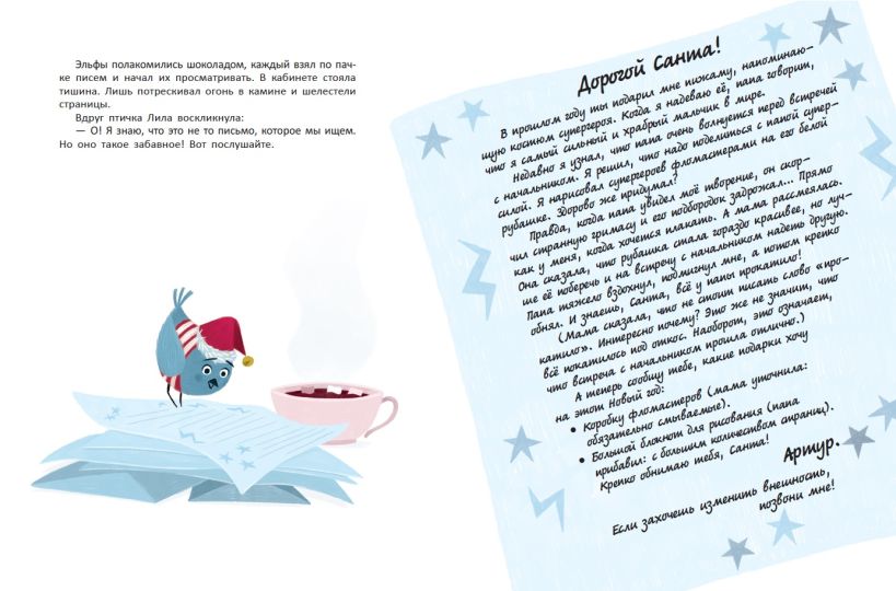 В конце книги малыша ждёт большой сюрприз — красивая открытка, которую можно заполнить и отправить по почте любимому новогоднему волшебнику.