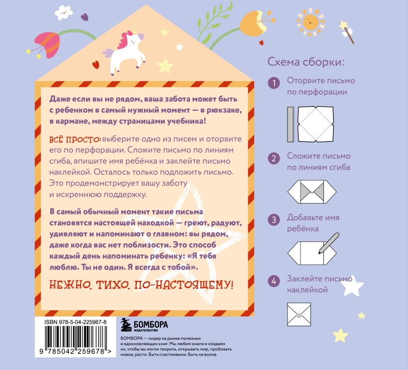 Даже если вы не рядом, ваша забота может быть с ребенком в самый нужный момент — в рюкзаке, в кармане, между страницами учебника! Эти нежные послания от родителя к ребенку можно вручить не словами, а жестом. Эти маленькие письма становятся мостиком между вами — в саду, в школе, в поездке, в дни, когда нет возможности обнять. На каждой карточке — теплое начало, фраза поддержки или нежное напоминание. Вам остается только добавить личное — пару строк от себя. Про то, как скучаете. Про то, как верите. Про то, как гордитесь.