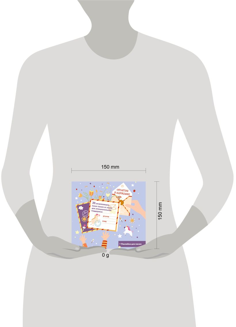 Размер — 10×15 см, как обычная открытка: помещается в ладошку и не мнется в рюкзаке.