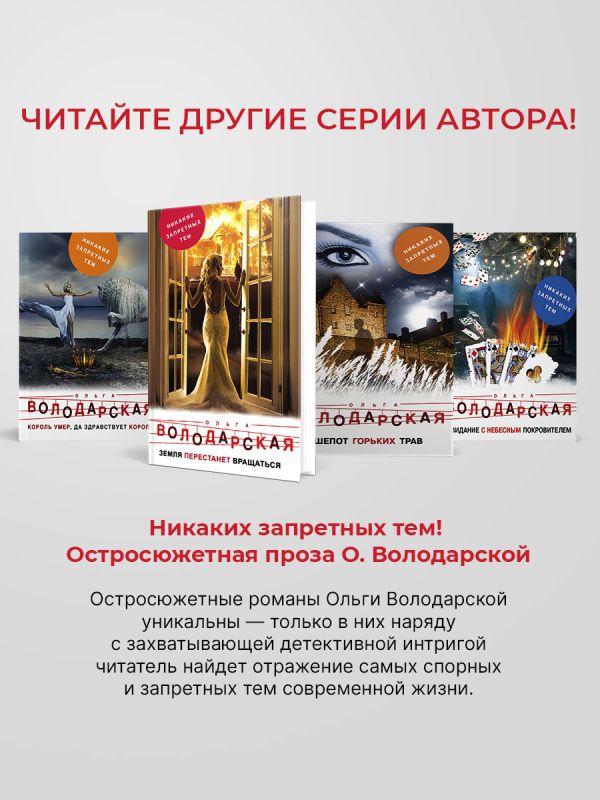 Романы Ольги Володарской — остросоциальные детективы, в которых автор препарирует все стороны жизни современного общества, ничего не скрывая и ни о чем не умалчивая. Ее книги написаны так увлекательно, что оторваться просто невозможно. Яркий сочный язык и блестящий авторский стиль создают неповторимую атмосферу.