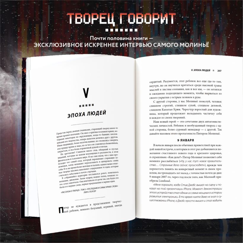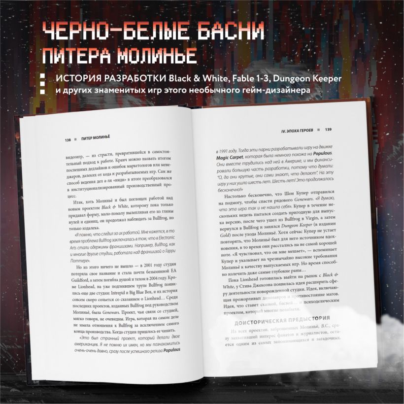«Если вам всегда хотелось узнать, где зародился мир фантазий Питера Молинье, то эта книга — отличный проводник в разум, быт и историю легендарного видеоигрового сказочника». — Даниил «Кортез» Петручик, автор «Мира Фантастики», ex-редактор DTF, игровой блогер