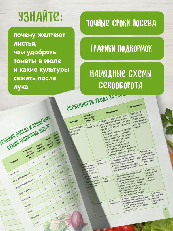- удобные таблицы для планирования посевов;