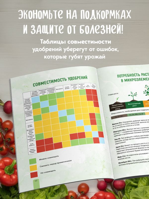 - правила внесения подкормок и таблицы мер и совместимости удобрений;