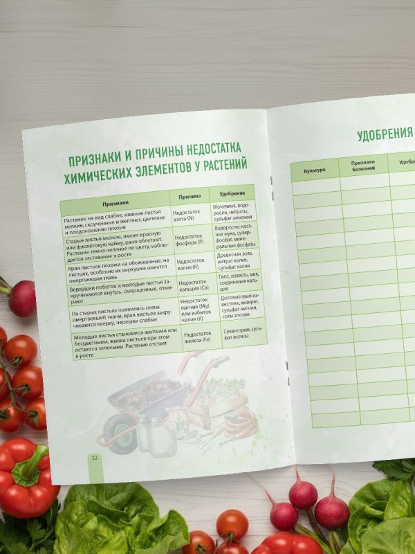 Хотите, чтобы ваш сад цвел, а огород дарил щедрый урожай без лишней суеты? С дневником садовода-огородника уход за растениями станет понятным, системным и вдохновляющим. Он поможет вам планировать работы, отслеживать результаты и превращать заботу о земле в удовольствие. Внутри вас ждет: - таблицы для планирования посевов; - календарь сезонных работ; - рекомендации по поливу и подкормкам; - подсказки по уходу и защите растений; - страницы для наблюдений и заметок. Записывайте, анализируйте и наслаждайтесь богатым урожаем каждый сезон!