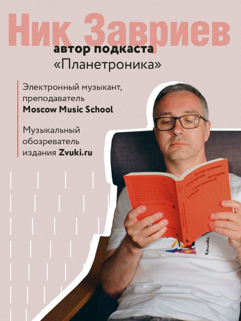 Ник Завриев — электронный музыкант, преподаватель Moscow Music School, лектор, музыкальный обозреватель изданий Zvuki.ru и Colta.ru.