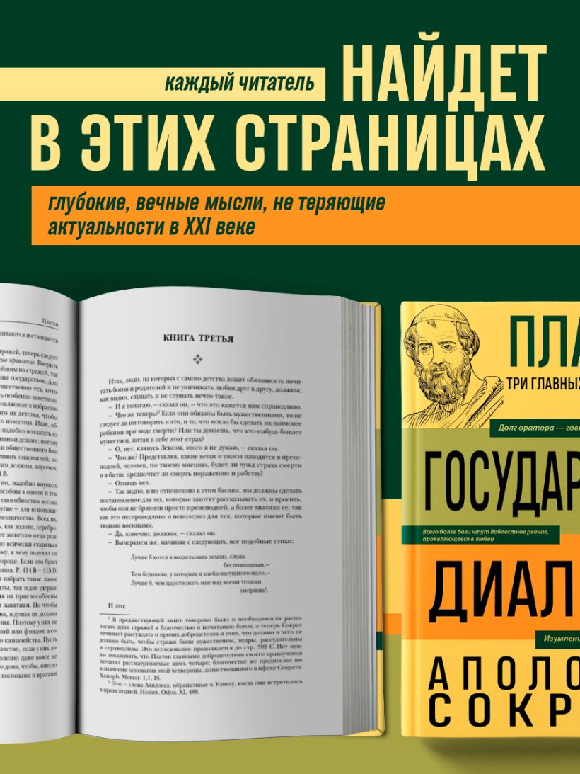 Откройте для себя философскую базу мировой культуры с книгой «Платон. Государство. Диалоги. Апология Сократа». В издание вошли ключевые тексты Платона: диалог «Государство», посвященный устройству идеального государства, «Апология Сократа», в которой Платоном собраны три речи другого выдающегося мыслителя, Сократа, произнесенные им в суде перед казнью. Также в книге целиком приводятся легендарные диалоги Платона, суммирующие основные тезисы платонизма: «Критон», «Федон», «Федр», «Софист», «Пир».