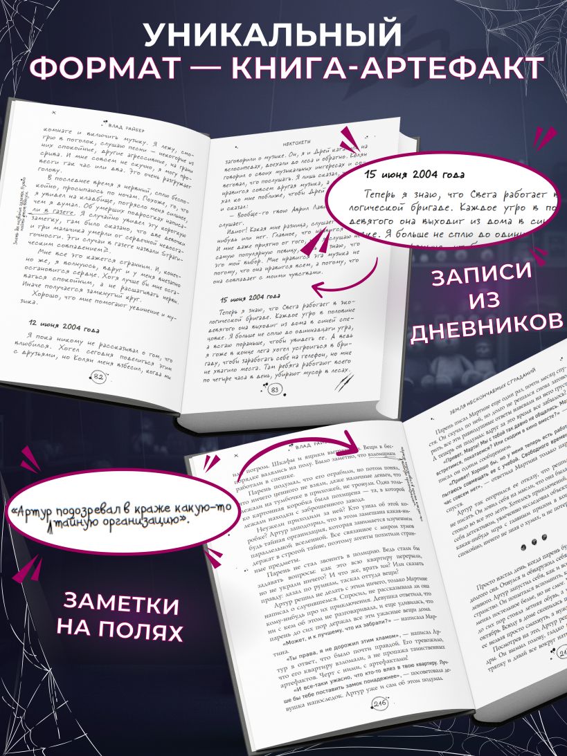 Однажды Артур побывал на заброшенном заводе и нашёл дверь в параллельный мир, населённый жуткими двойниками людей. С тех пор он стал одержим поиском мистических тайн. Оказывается, в каждой городской легенде есть доля правды: Цапка, обитающая в темноте — вовсе не выдумка. Насмешливый карлик с малиновой кожей в самом деле существует. Обо всём этом свидетельствуют дневники пропавших людей! Загадочная девушка в кошачьей маске ищет новую жертву. А в маленьком магазинчике на тихой улице торгуют проклятыми вещами на любой вкус.