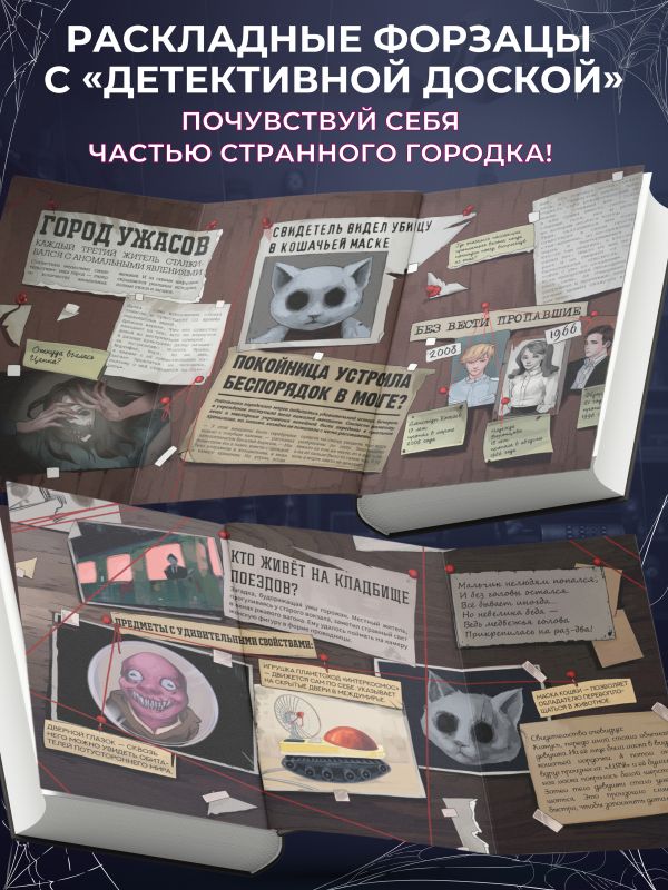 Любимые истории теперь в новом оформлении! Внутри цветные вклейки с монстрами и их способностями, как в любимых играх! На форзацах доска расследований — почувствуй себя частью странного городка!