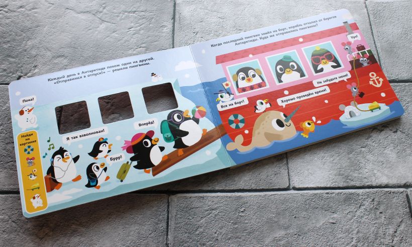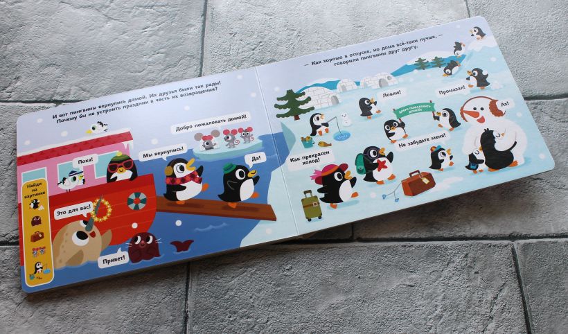 На каждом развороте вас ждут спрятанные на картинке предметы. Читайте историю, ищите предметы и находите их вместе с ребёнком.