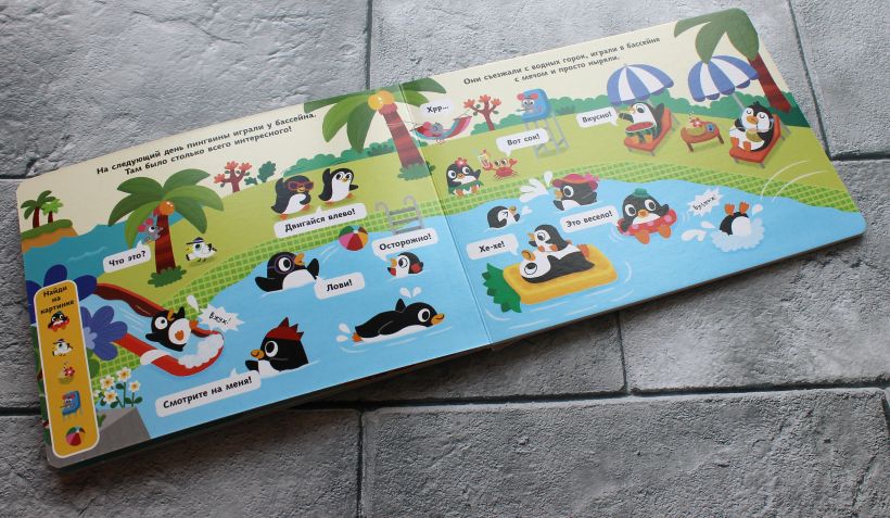 Чем можно заняться во время отпуска? Вместе с весёлыми пингвинами мы будем плавать в море, загорать, строить замки из песка, играть в бассейне и есть вкусное мороженое.