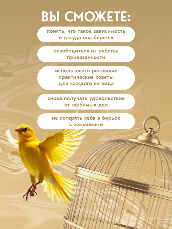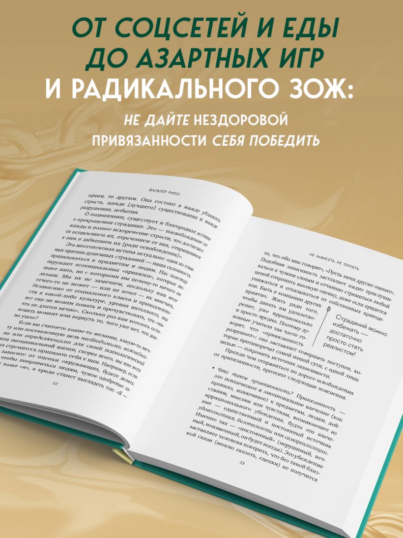 «Не зависеть, не терпеть» рассказывает о том, как опознать нездоровую привязанность (к человеку, работе, еде, вредным привычкам или радикальному ЗОЖу) и не дать ей себя победить.