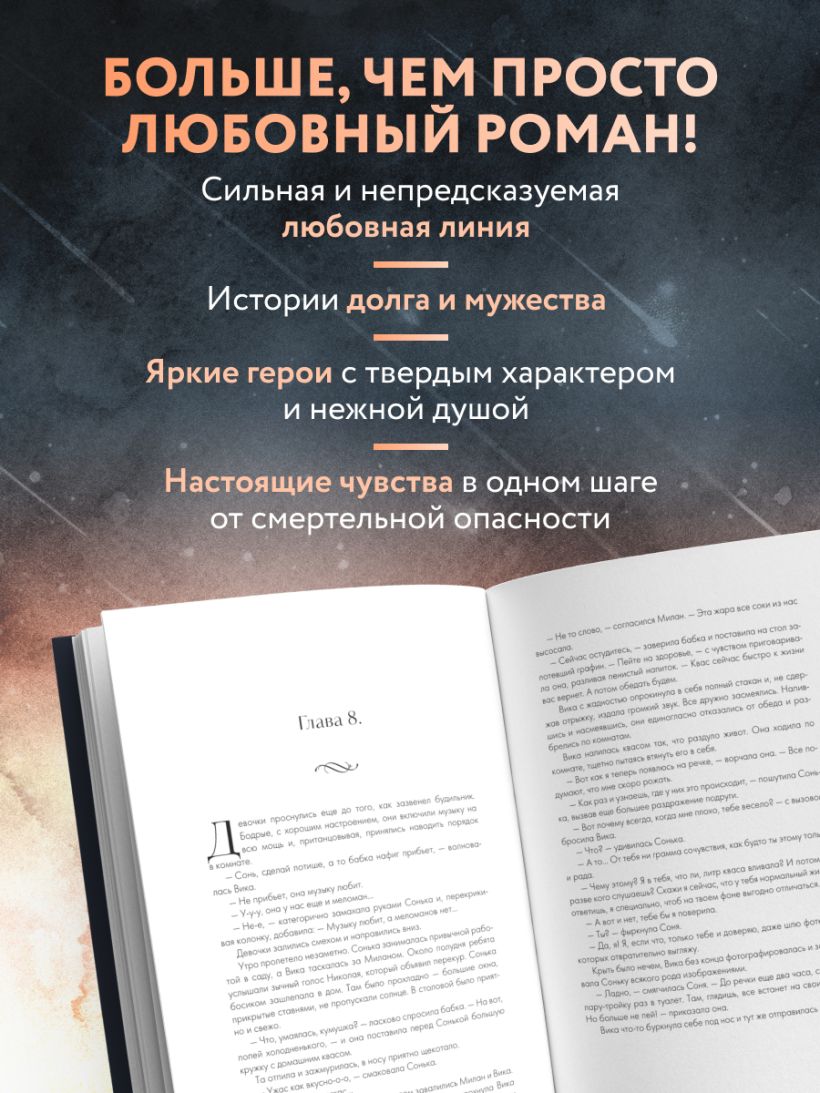 Давно не читала такой простой и светлой истории с неожиданными поворотами сюжета. Начнем с того, что на пару Соня — Кирилл я бы в жизни не поставила. Но, оказалось, они прекрасно подошли друг другу — и доказывали это читателям до самого финала. В общем, советую всем, кто любит красивые и необычные истории любви и мужества.