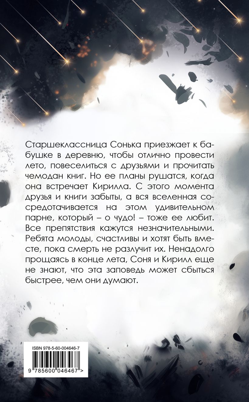 Старшеклассница Сонька приезжает к бабушке в деревню, чтобы отлично провести лето, повеселиться с друзьями и прочитать чемодан книг. Но ее планы рушатся, когда она встречает Кирилла. С этого момента друзья и книги забыты, а вся вселенная сосредотачивается на этом удивительном парне, который — о чудо! — тоже ее любит. Все препятствия кажутся незначительными. Ребята молоды, счастливы и хотят быть вместе, пока смерть не разлучит их. Ненадолго прощаясь в конце лета, Соня и Кирилл еще не знают, что эта заповедь может сбыться быстрее, чем они думают.