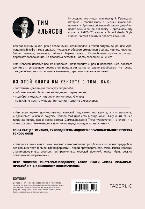 Тим Ильясов точно знает, как усовершенствовать ваш стиль, чтобы каждый выход из дома, будь то на работу, прогулку или праздник, становился фурором. Все практические советы он иллюстрирует реальными историями, в которых женщины под его руководством преобразились до неузнаваемости. Возьмите бокал игристого и начните свой путь в мир моды! С Тимом Ильясовым это путешествие к стильной версии себя будет легким и увлекательным.