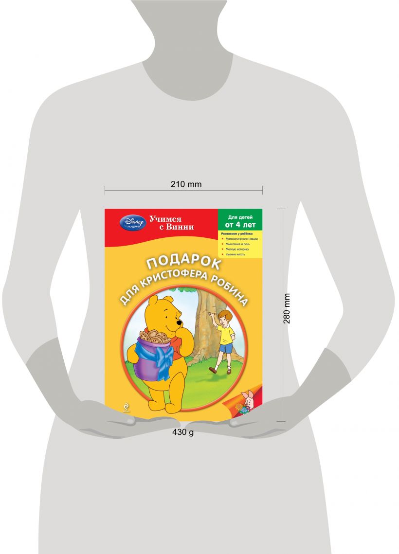 Прочитав в этой книге увлекательную историю о приключениях Винни и его друзей, ребёнок не только поможет жителям Большого Леса порадовать Кристофера Робина удивительными подарками, но и в доступной игровой форме познакомится с алфавитом, разовьёт навыки мышления и речи, а также усовершенствует мелкую моторику рук и координацию движений. И, конечно же, малыш поймёт, что самый лучший подарок – это дружба!