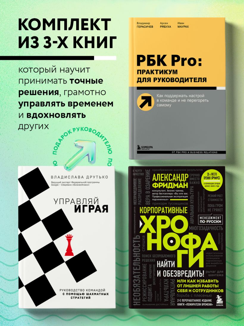 «Управляй играя. Руководство командой с помощью шахматных стратегий» — эта книга от эксперта по лидерству и личной продуктивности — полезное руководство по управлению командами с помощью шахматных стратегий. В ней предлагаются оригинальные и технологичные инструменты по диагностике ситуации в команде, а также по корректировке стиля руководства в случае необходимости.