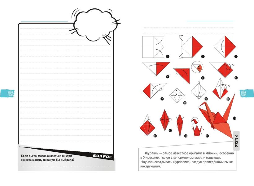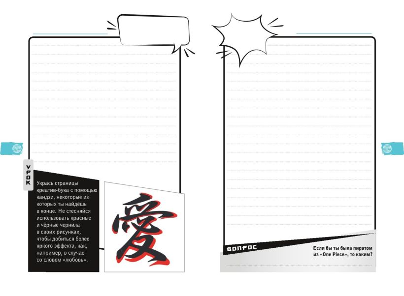 Перед тобой не просто дневничок! Это креативное пространство, подсказывающее любителям манги и аниме идеи творчества и поделок в азиатском стиле. Планируй дела и параллельно учись рисовать мангу, знакомься с основными японскими понятиями, проверь свои знания и просто весело проведи время за раскрашиванием!