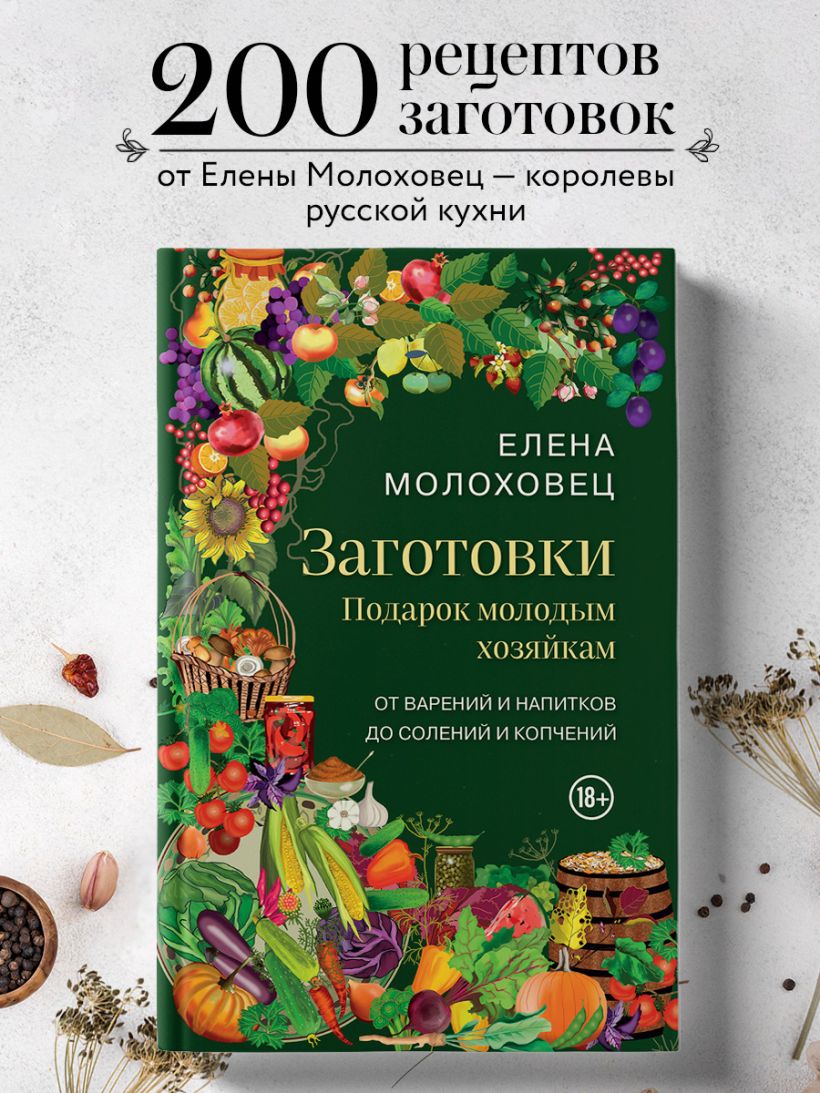 В классическом издании «Подарок молодым хозяйкам» Елены Молоховец имеется раздел «Заготовки». Мы сделали отдельную книгу, т.к. в новую редакцию основной, с нашими примечаниями и уточнениями, некоторые разделы не поместились. А тема заготовок занимает у хозяек одно из главных мест.