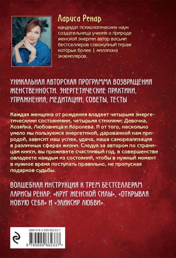 ЛАРИСА РЕНАР — кандидат психологических наук, создательница учения о природе женской энергии, автор семи бестселлеров, совокупный тираж которых более 1 миллиона экземпляров.