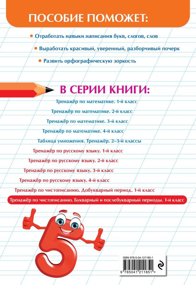 Пособие по профилактике дисграфии и развитию почерка от издательства «Эксмо» подготовлено практикующим нейропсихологом, который каждый день помогает учащимся начальной школы справиться с возникающими проблемами в обучении. Цель тренажера — повышение общей грамотности учеников 2, 3, 4 классов. В основе пособия лежит нейропсихологический подход, который включает в себя упражнения для развития высших психических функций: внимания, зрительно-моторной координации, объема зрительной и двигательной памяти, механизма произвольности речи. Выполняя задания, учащиеся повторят правописание ЖИ-ШИ и Ц, безударной гласной в корне, проверяемых и непроверяемых согласных, непроизносимых согласных, Ь и Ъ, сочетаний ЧК, ЧН, НЩ, приставок и предлогов, удвоенных согласных; склонение существительных и спряжение глаголов; знаки препинания в простых предложениях, а также научатся применять правила грамматики на письме, улучшат почерк, перестанут пропускать и путать буквы. Использование нейротренажера в качестве дополнительного материала позволит ребенку своевременно устранить всевозможные сложности в усвоении школьного материала и формировании необходимых навыков. Кроме того, в серию «Уроки нейропсихолога в начальной школе» входят книги: «Развитие внимания и памяти: для детей 8—10 лет», «Развитие навыка грамотного письма: для детей 9—10 лет», «Пишу без ошибок. Развитие орфографической зоркости: для детей 9—10 лет», «Решаю быстро и правильно. Сложение и вычитание: для детей 7—8 лет», «Развитие математических способностей и навыков: для детей 9—10 лет», «Говорю грамотно. Развитие речевого потенциала: для детей 8—10 лет».