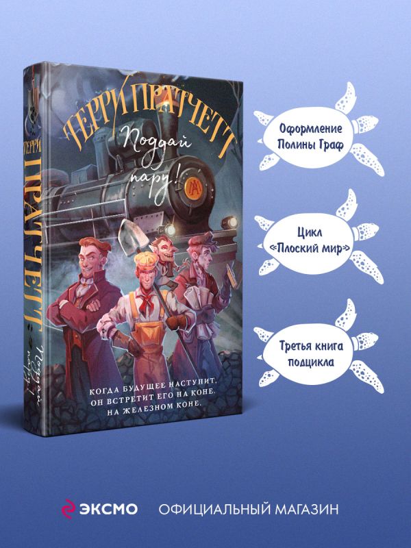 Третья и заключительная книга о приключениях обаятельного мошенника Мойста фон Липвига. Переиздание знаменитого цикла «Плоский мир» сэра Терри Пратчетта, который стал легендой и классиком еще при жизни. Оформление суперпопулярной в России художницы и писательницы Полины Граф. Внутри эскизы персонажей и сюжетных сцен, рельсы, строящиеся на страницах, портрет автора и дополнительная цветная иллюстрация.