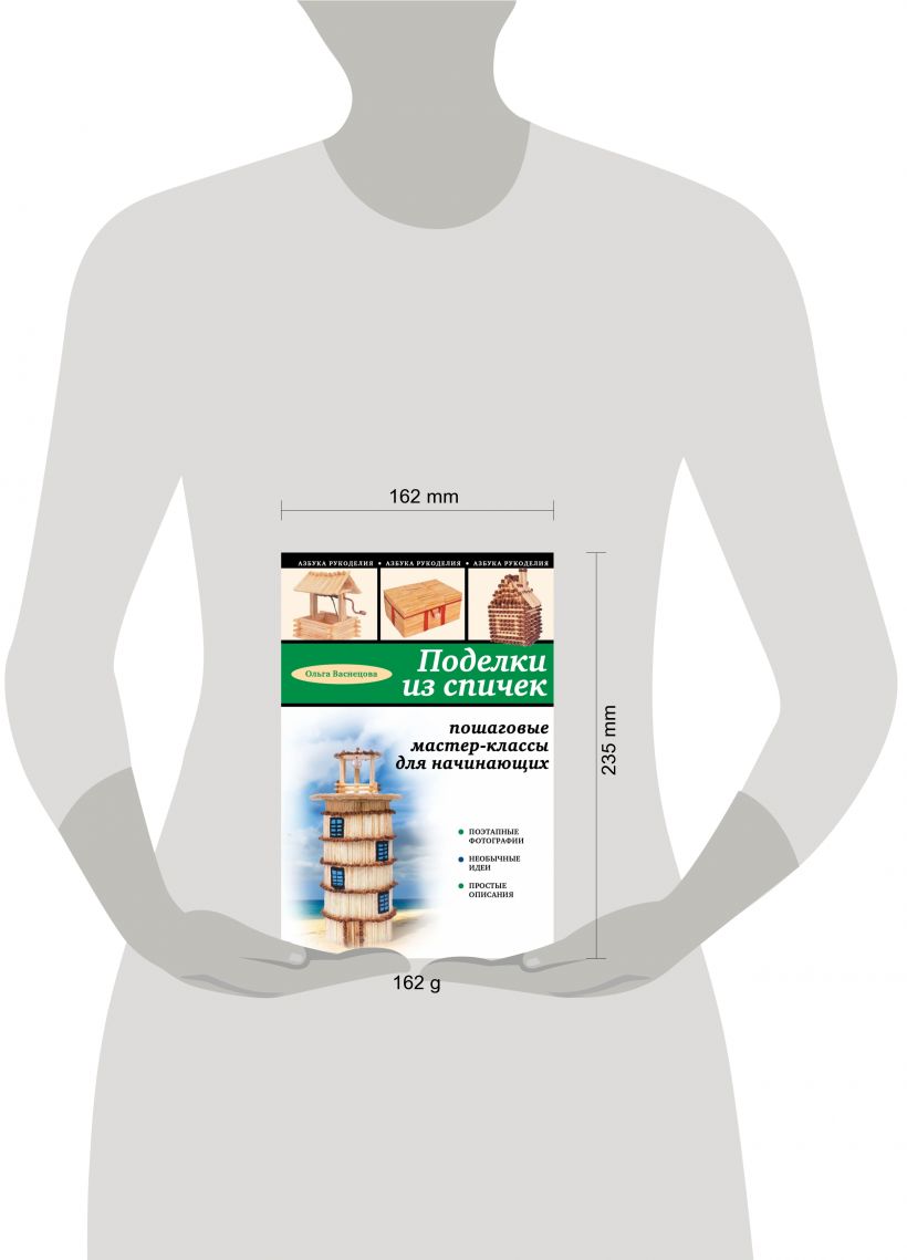 Спички – один из самых простых и доступных материалов для творчества с богатыми возможностями, который позволяет создавать удивительные поделки! Убедитесь в этом сами вместе с этой книгой, на страницах которой вы найдете всю необходимую информацию об инструментах, о способах построения из спичек различных конструкций, а также о хитростях изготовления поделок без клея. Проявив капельку усидчивости, вы научитесь делать из спичек маяк, домик, колодец, скворечник, шкатулку, а также различные панно и другие поделки. А помогут вам в этом подробные описания выполнения каждой поделки, яркие пошаговые иллюстрации полезные советы от спичечных дел мастера!