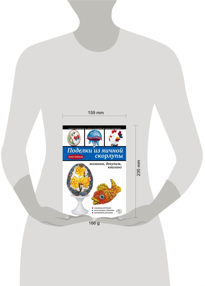 Яичная скорлупа – уникальный материал: очень доступный, он предоставляет безграничные возможности, да и работать с ним просто и необычайно увлекательно. Известный российский дизайнер, член Союза дизайнеров России Анна Зайцева предлагает то, что придется по вкусу как взрослым, так и детям – чудесные поделки из яичной скорлупы: от забавных игрушек до декоративных мозаик и других очаровательных вещиц. Вы узнаете о способах подготовки яичной скорлупы к работе, необходимых материалах, а также о разнообразии модных техник декорирования, таких как роспись, декупаж, квилинг, вышивка лентами – и все это с пошаговыми иллюстрациями и подробными инструкциями!