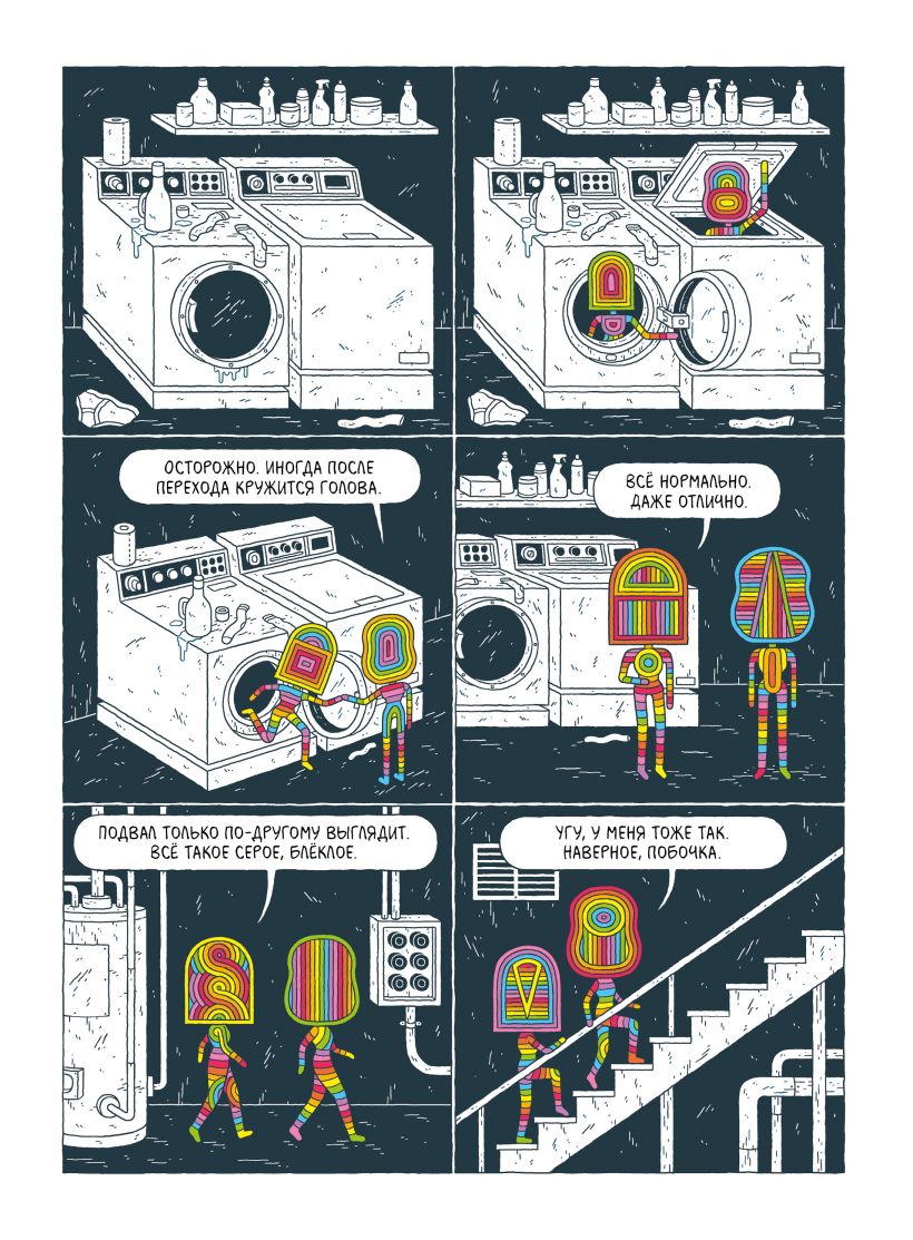 Дейзи только что переехала в новый город и чувствует себя чужой среди одноклассников. Но в подвале её дома таится нечто немыслимое, позволяющее забыть обо всём за пределами стен: стиральная машина, служащая порталом в яркий психоделический мир, лишённый привычных нам законов физики и логики. Фрактальные материи и внепространственные ключи меняют здесь всё сущее до состояния полной неузнаваемости.