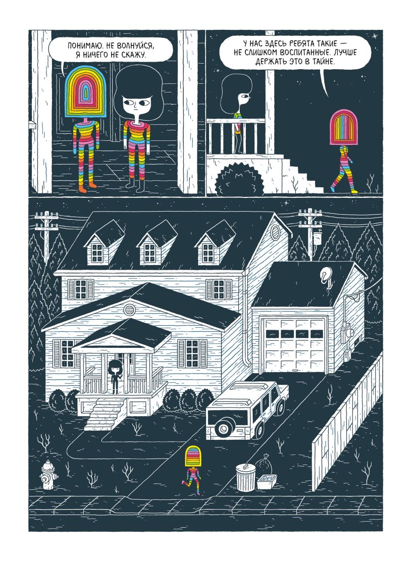 «Подпространство» — психоделическая метафора взросления от канадского художника Джесси Джейкобса, объединяющая элементы сюрреализма, подростковой драмы и философии. Каждый разворот этого произведения — визуальное пиршество, где тщательно проработанные детали и яркие цвета создают атмосферу, погружающую читателя в мир, который одновременно пугает и восхищает.