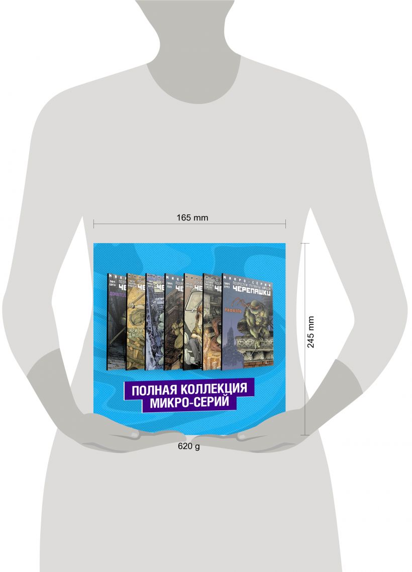 В комплект входят комиксы "Подростки Мутанты Ниндзя Черепашки, микро-серии, Микеланджело", "Подростки Мутанты Ниндзя Черепашки, микро-серии, Рафаэль", "Подростки Мутанты Ниндзя Черепашки, микро-серии, Донателло", "Подростки Мутанты Ниндзя Черепашки, микро-серии, Леонардо", "Подростки Мутанты Ниндзя Черепашки, микро-серии, Сплинтер", "Подростки Мутанты Ниндзя Черепашки, микро-серии, Кейси Джонс" и "Подростки Мутанты Ниндзя Черепашки, микро-серии, Эйприл".