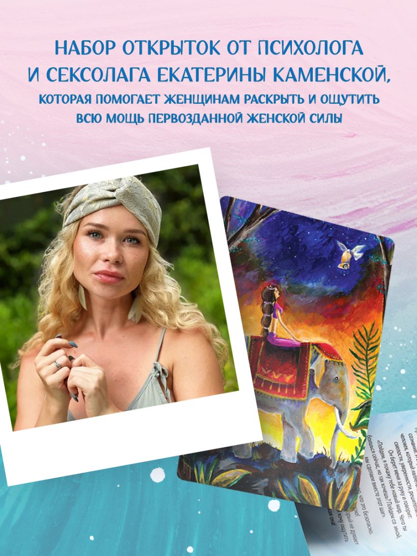 Также открытки выходят в оформлении «Ева. Метафорические открытки с любовью и заботой о себе и тех, кто рядом (жаркая ночь)».