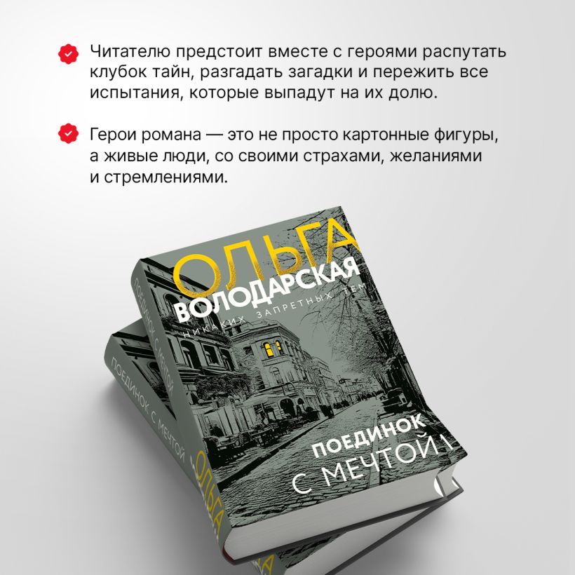 Романы Ольги Володарской — остросоциальные детективы, в которых автор препарирует все стороны жизни современного общества, ничего не скрывая и ни о чем не умалчивая. Ее книги написаны так увлекательно, что оторваться просто невозможно. Яркий сочный язык и блестящий авторский стиль создают неповторимую атмосферу, в которую с головой погружается читатель.