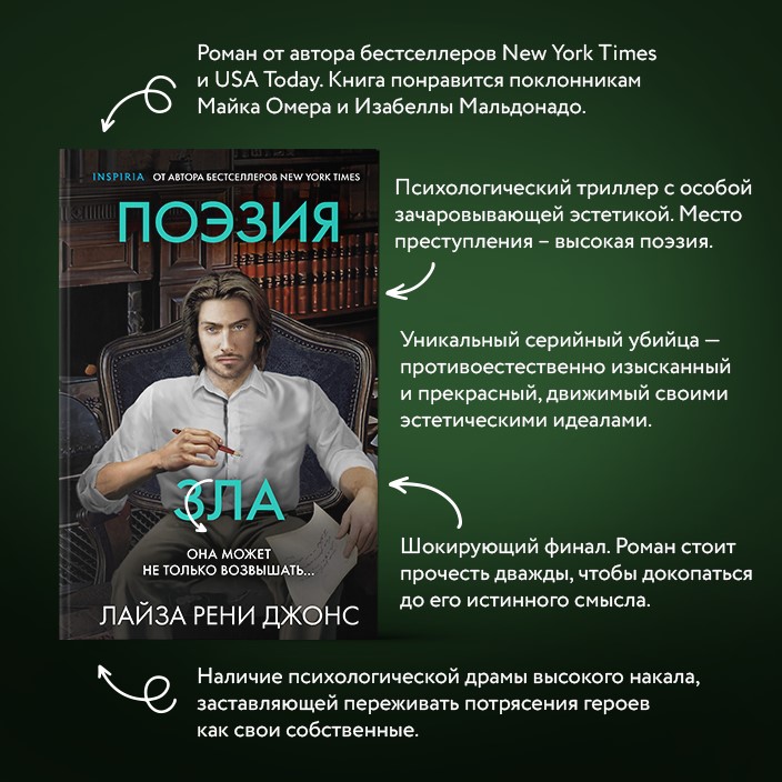 Это дело грозит стать ее первой неудачей. Оно сплетено из сравнений и метафор, не дающих ответы ни на один ее вопрос; лишь, как дописанные строфы, множатся мертвые тела. Но Саманта чувствует, что постепенно приближается к Поэту. А еще – что он так же неумолимо приближается к ней…