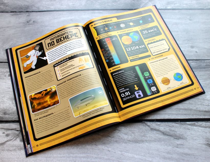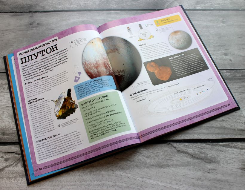 Это невероятно красочное издание входит в ТОП-100 лучших в мире книг по астрономии рейтинга Amazon. Оно посвящено одной из самых захватывающих тем — нашей Вселенной. А ещё у энциклопедии есть удивительный секрет: она светится в темноте! Читатели узнают, как образовались разные небесные тела, в чём секрет природных явлений, наблюдаемых в небе, как находить невооружённым глазом различные созвездия и планеты и многое другое. Карты небесных полушарий и сделанные своими руками астрономические инструменты помогут каждому мастерски ориентироваться в самых загадочных уголках звёздного неба! А разглядеть объекты Солнечной системе во всей их красе позволят большие и яркие фотографии. Книга будет интересна и полезна как школьникам, так и взрослым любителям космоса. Она отлично подходит для изучения всей семьёй и послужит идеальным подарком по любому поводу!