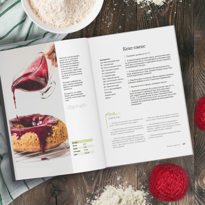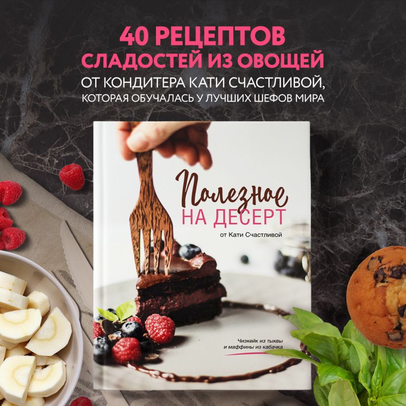 Это не просто книга, это еще и целая ЗОЖ-энциклопедия: под одной обложкой уместились не только рецепты, но и полезная информация об уникальности и лечебных свойствах каждого овоща, подробный рассказ о разных видах муки, масел, загустителей, натуральных заменителях сахара и других ингредиентах. Катерина Счастливая даже пишет так вкусно и по ходу подкидывает читателю столько идей, что после прочтения книги наверняка захочется придумать свой овощной десерт. И не один!