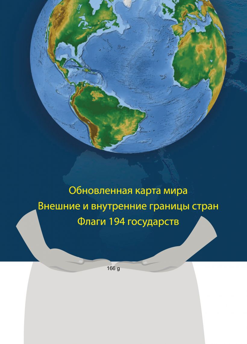 Обновленная карта с внутренними и внешними границами стран. Максимум полезной информации - флаги государств, сведения о численности населения, национальной валюте, об официальном языке, ВВП на душу населения и количестве пользователей Интернета.