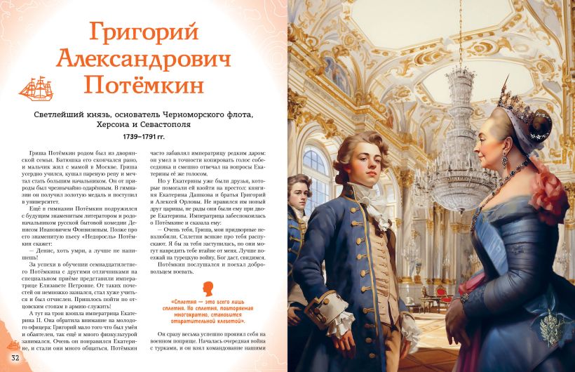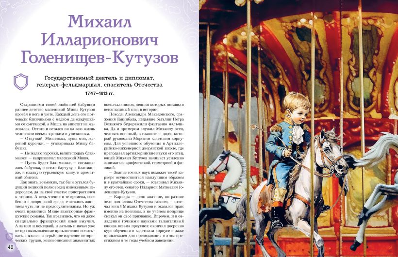 Издание предназначено для среднего школьного возраста, однако будет интересно и взрослым, а также станет неповторимым подарком по любому поводу для всех, кто любит Россию и гордится ею. Читайте всей семьёй и узнавайте всё самое интересное о великих людях нашей страны!