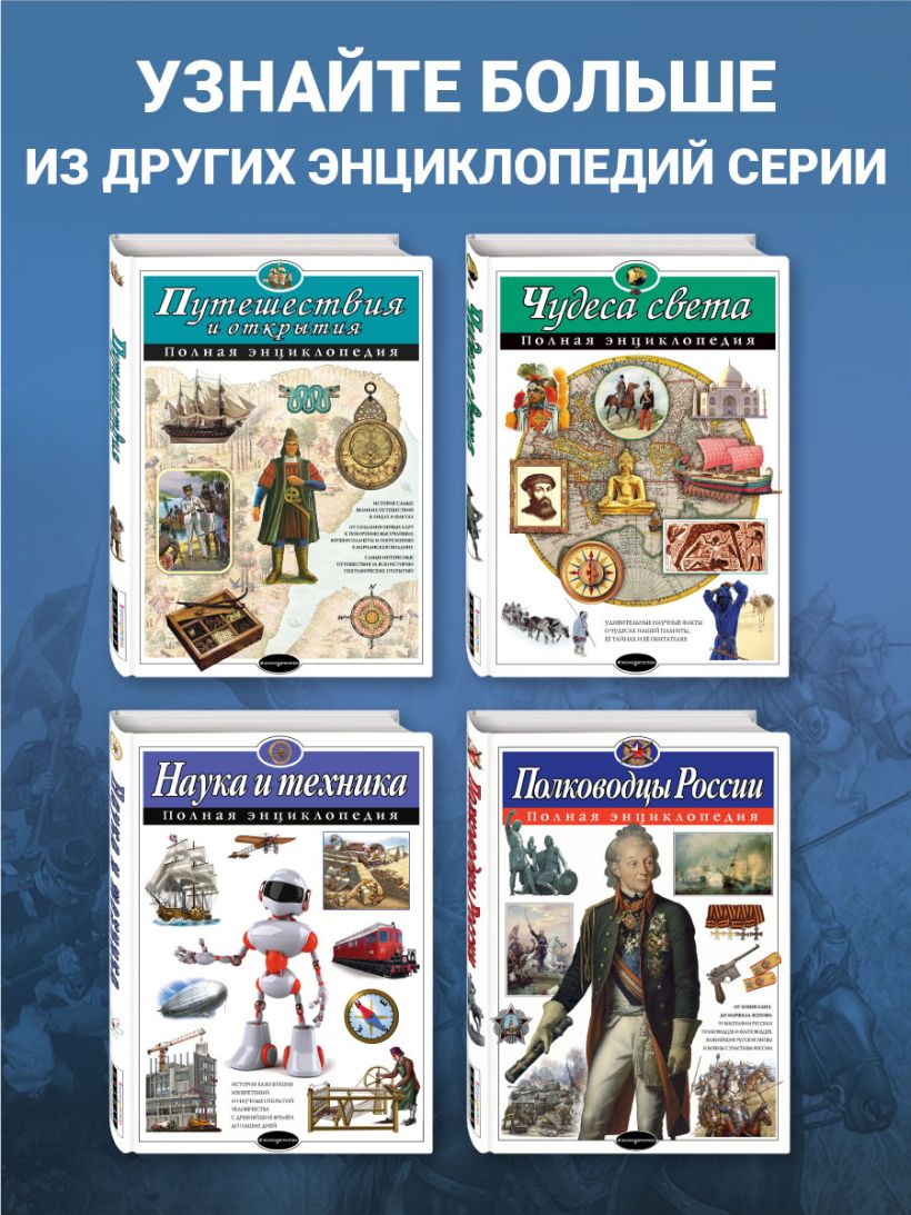 Эта большая подарочная книга рассказывает о более чем 60 наших знаменитых соотечественниках из разных периодов истории России: военачальниках, учёных и изобретателях, писателях, художниках, музыкантах, артистах, путешественниках, лётчиках и космонавтах… И история каждого из них вдохновляет юных читателей на собственные свершения, подаёт достойный пример для подражания и прививает интерес и любовь к родной стране. Невероятно увлекательный и популярный способ повествования о жизни великих личностей: их биографии, написанные в жанре нарративного нонфикшена, превращаются в захватывающие исторические «детективы», «романы» и «боевики»! Динамичные, современные, яркие иллюстрации созданы специально для этой книги! Книги серии получили заслуженно высокую оценку — в 2024 году они были номинированы на премию Российского общества «Знание» в категории «Лучшая просветительская книга». Это издание из патриотической серии «Великие люди великой страны» предназначено для читателей среднего школьного возраста, однако будет интересно и взрослым, а также станет неповторимым подарком по любому поводу для всех, кто любит Россию и гордится ею. Читайте всей семьёй и узнавайте всё самое интересное о великих людях нашей страны!